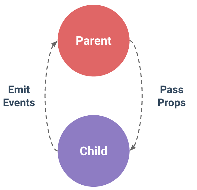 부모는 자식에게 v-bind ( : )를 통해 데이터를 전달하고, v-on (@)을 통해 자식에 정의된 이벤트를 수신할 수 있다.