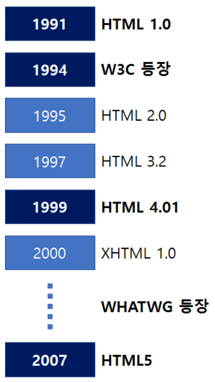 - W3C가 XHTML을 표준으로 삼으려는 움직임에 대항하여 기업들이 HTML을 계승하는 자신들만의 표준을 만든다.